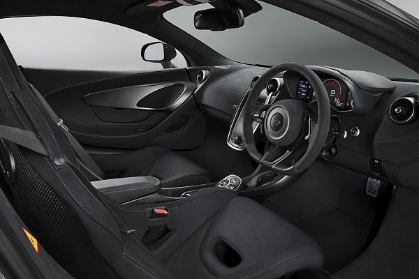 Already the most powerful and lightest car in its class, the McLaren 570S with Track Pack tips the scales at 25kg less than the coupé in standard form. This weight reduction is made possible by a lightweight interior package with Alcantara® replacing leather for the seats, dashboard and steering wheel covering, plus the introduction of carbon-fiber racing seats with circuit-proven lateral location. This delivers the most rewarding cabin environment for the driver to exploit the car’s capabilities to the full – including its acceleration from 0-124mph in 9.4 seconds and 204mph top speed. Further weight reductions include the Stealth-finish super-lightweight alloy wheels.