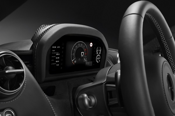 “The new McLaren Driver Interface is a matchless example of advanced driver engagement built around two separate high-definition screens; a Folding Driver Display and a Central Infotainment Touch screen,” explained Mark Vinnels, Executive Director – Product Development at McLaren Automotive. “The Folding Driver Display is revolutionary in offering both a choice of information shown and physical position, seamlessly complementing driver preferences while at the same time furnishing a glorious piece of engineering theatre.”